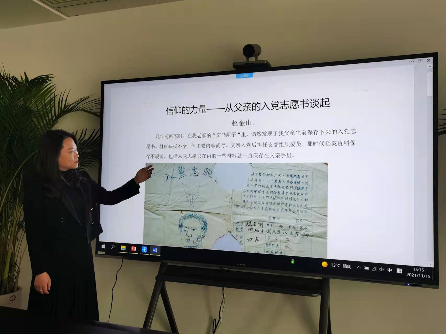 大家還研讀了趙金山同志的文章《信仰的力量——從父親的入黨志愿書(shū)談起》,在文中我們看到了趙金山同志的父親趙玉剛同志的《入黨志愿書(shū)》,這份《入黨志愿書(shū)》由中共冀南武邑縣委組織部印制,歷經(jīng) 60 多年歲月,雖已殘破,但圖案和字跡依然清晰,是非常寶貴的文獻(xiàn)資料。在了解了這份《入黨志愿書(shū)》的故事和趙玉剛同志的生平事跡后,大家被這種信仰堅(jiān)定、忘我奉獻(xiàn)、吃苦在前、享受在后的精神所打動(dòng),表示一定要繼承老一輩共產(chǎn)黨員的光榮傳統(tǒng),在公司戰(zhàn)略轉(zhuǎn)型的關(guān)鍵時(shí)期勇挑重?fù)?dān),踐行使命-----這是我們每個(gè)共產(chǎn)黨員的責(zé)任。