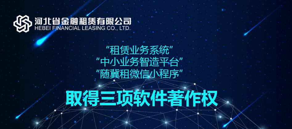 近日,由河北省金融租賃有限公司(以下簡稱“河北金租”)研發(fā)的“中小業(yè)務(wù)智造平臺”、“租賃業(yè)務(wù)系統(tǒng)”、“隨冀租微信小程序”三件軟件成果正式通過國家版權(quán)局審核,獲得計算機軟件著作權(quán),此舉進一步完善了河北金租知識產(chǎn)權(quán)保護體系,也標志著公司科技創(chuàng)新工作邁上新臺階。