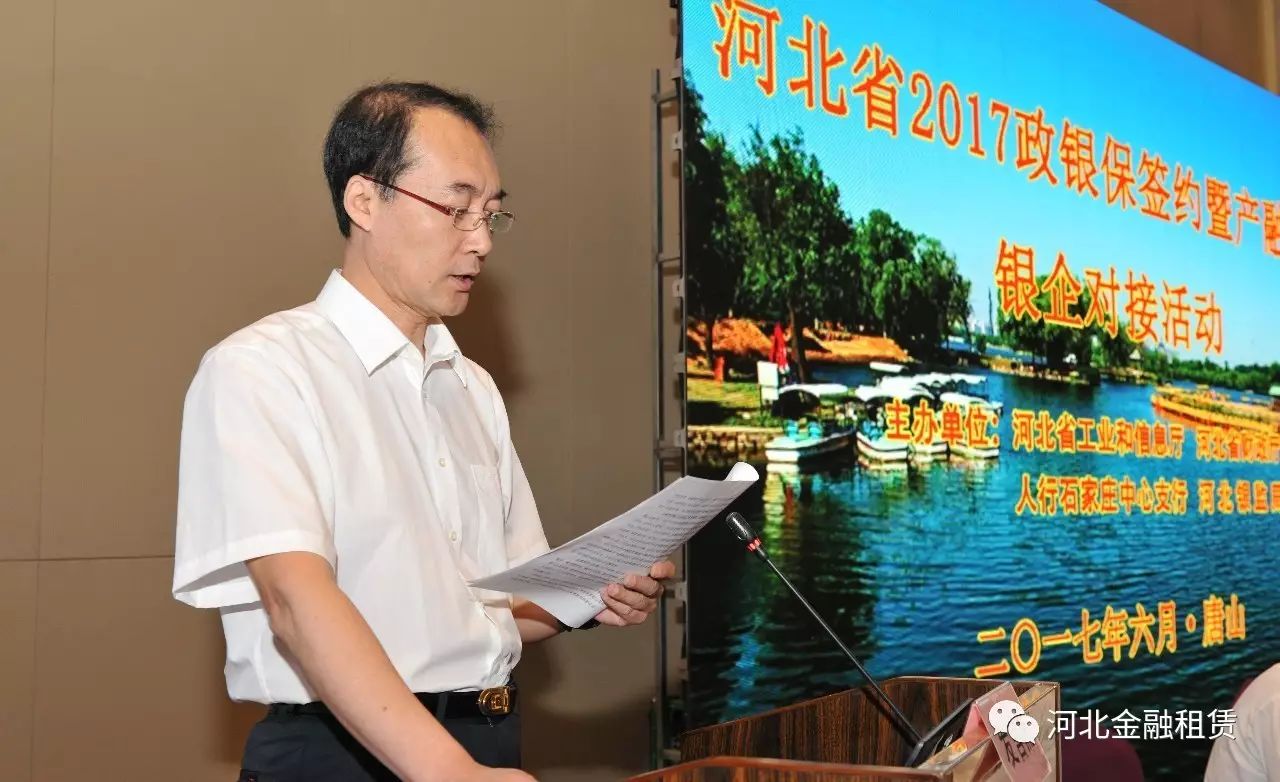 日前,河北省2017政銀保合作簽約暨產(chǎn)融合作銀企對(duì)接活動(dòng)在國(guó)家產(chǎn)融合作試點(diǎn)城市唐山市舉行。本次活動(dòng)由河北省工業(yè)和信息化廳、省財(cái)政廳、人行石家莊中心支行、河北銀監(jiān)局聯(lián)合主辦,河北省金融租賃有限公司(以下簡(jiǎn)稱河北金租)受邀參加本次活動(dòng)。